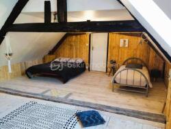 Vie de plain pied possible grâce à trois belles chambres sur parquet stratifié, dont une en enfilade. À l'étage, un escalier mène à une chambre sous rampant, des toilettes et une grande chambre de type dortoir équipée d'une baignoire, parfaite pour recevoir ou créer un espace dédié aux enfants.