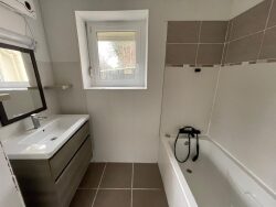 Au rdc : une entrée vitrée avec cuisine ouverte aménagée et équipée, une grande pièce de vie en pierre apparentes de 38 m2 avec cheminée et poêle à granulés ainsi qu'une véranda donnant sur la terrasse et jardin exposé sud-ouest, une buanderie, une salle de bain et un wc séparé.