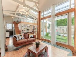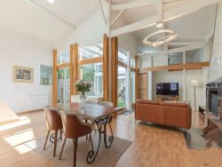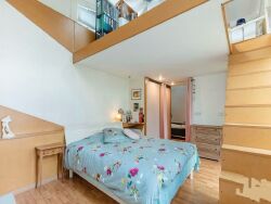 Une suite parentale se trouve à l'arrière du salon et une mezzanine qui peut servir de chambre supplémentaire.