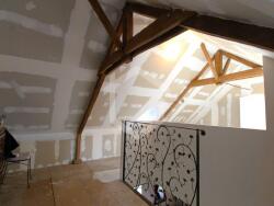 L'étage baigné de lumière naturelle, offre une chambre, un véritable cocon de tranquillité. La mezzanine offre un espace convivial, le coin chambre, crée une atmosphère chaleureuse.