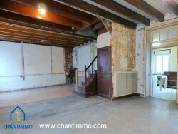Dans bourg avec premiers commerces, beaucoup de charme et de caractère pour cette maison en pierres à finir de rénover comprenant une cuisine, un séjour/salon spacieux, une chaufferie. A l'étage 2 grandes chambres et un bureau, sanitaire et un grenier aménageable de 90M². Chauffage central fuel, travaux de remise aux normes électriques à prévoir + isolation. Grand garage attenant de 90M² offrant un beau potentiel pour les amoureux de bricolage. Terrain sur l'arrière.