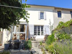 Charmante maison en pierres de 133 m² avec 80 m² de dépendances aménageables et 30 m² de garage dans un hameau calme à 1 kms du bourg de Saint Hilaire de Villefranche. Avec une cour fermée sans vis à vis, arborée et fleurie, cette propriété est un petit havre de paix. La maison se compose d'une entrée-véranda donnant sur le jardin, d'une cuisine équipée, d'un séjour avec poêle à granulés, d'une chambre en RDC, WC et salle d'eau refaite entièrement en 2018. A l'étage deux grandes chambres de 34 m² et 35 m², un coin toilettes avec lavabo et possibilité d'y aménager une seconde salle d'eau. L'assainissement est aux normes et relié au tout à l'égout. Fibre installée / Aucuns travaux à prévoir. Possibilité de projets de gîte ou studio indépendant.