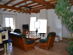 Située en position dominante, cette bâtisse en pierres traditionnelle de plain pied est édifiée sur un magnifique terrain paysagé donnant sur un panorama exceptionnel. Elle est composée d'un séjour/cuisine de 70M², 3 chambres, une salle de bains et 1 cellier. (chambres supplémentaires possibles).Chauffage central. Source.