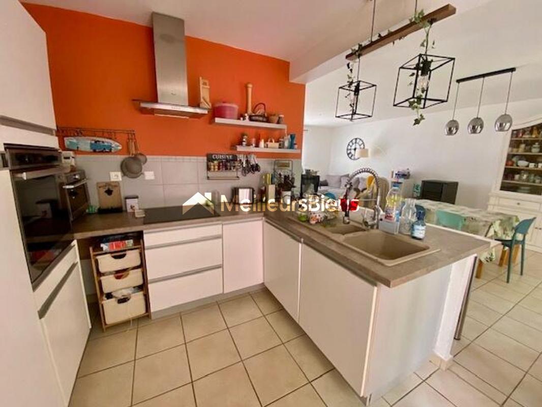 Dès l'entrée, vous découvrirez un vaste séjour-salon baigné de lumière, mettant en valeur la belle hauteur sous plafond et les éléments anciens soigneusement conservés. La cuisine indépendante, fonctionnelle et chaleureuse, permet d'accueillir vos repas en toute convivialité.