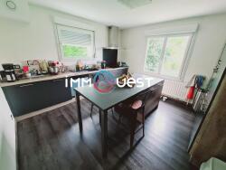Exclusivité Immouest : Pavillon individuel de 189 m² habitables sur sous-sol avec garage de 52 m² sur une parcelle de +1400 m². Offrant au rez-de-chaussée: une entrée, un séjour avec un poêle à bois, une cuisine aménagée et équipée, 3 chambres, une salle de bains ainsi qu'un WC.