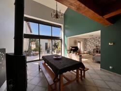 Côté confort, la maison dispose d'un chauffage au gaz, d'un poêle à bois et de menuiseries en double vitrage bois et alu garantissant isolation et authenticité.