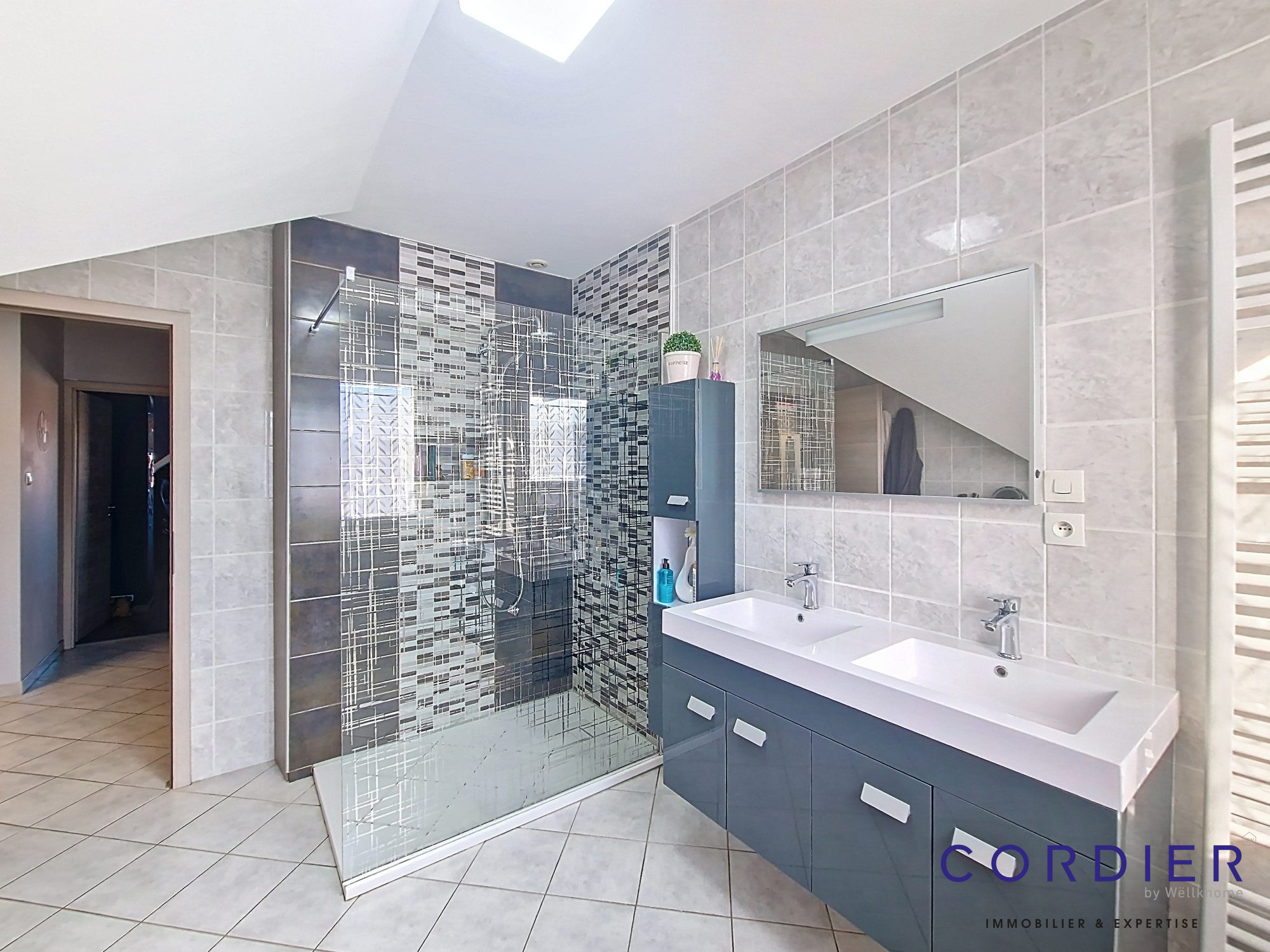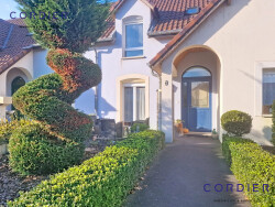 3 grandes chambres avec placards (dont une suite parentale avec douche, wc et dressing), une salle de bains avec douche, un cellier, un garage. 3 toilettes au total Maison familiale spacieuse et très lumineuse. Tous les volets électriques, porte de garage sectionnelle, Chauffage pompe à chaleur avec 2 thermostats DPE : B `GES : A