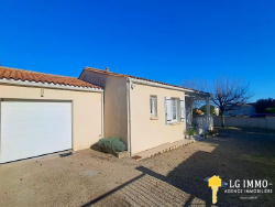 - LG IMMO - Cabinet GARÉCHÉ vous propose cette charmante maison située dans un quartier résidentiel calme et recherché à 1.2km de la plage et des commerces , parfaitement adaptée pour des personnes ne souhaitant pas réaliser de travaux et juste poser les valises. Dès l'entrée le ton est donné par les couleurs pastelles qui créent une ambiance chaleureuse avec une belle pièce de vie de 37m2 comprenant un espace salle à manger et un coin salon très cosy. La cuisine très fonctionnelle est séparée et entièrement équipée. Le couloir dessert deux belles chambres de 18.5m2 et 12.5m2 ainsi qu'une salle d'eau avec coin buanderie et des WC séparés. Un grand garage de 32 m2 complète ce bien vous permettant d'y installer un coin atelier ou si besoin créer une troisième chambre avec salle d'eau, le terrain permettant de garer deux ou trois voitures. Le plus de ce bien, un jardin entièrement clôturé avec deux portails dont un électrique , son isolation et sa pompe à chaleur avec clim réversible qui permet de classer la maison avec un DPE en C. A voir sans tarder pour plus d'informations, contactez Martine Robin 07 54 10 23 93 ou par email : martine.robinlgimmo@gmail.com Estimation gratuite