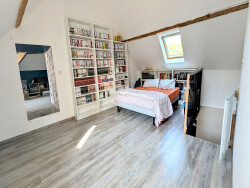 À l'étage, un grand palier en parquet flottant de plus de 20 m² peut facilement être aménagé en espace bureau, bibliothèque ou salle de jeux. Trois belles chambres, également en parquet flottant, viennent compléter cet espace nuit.