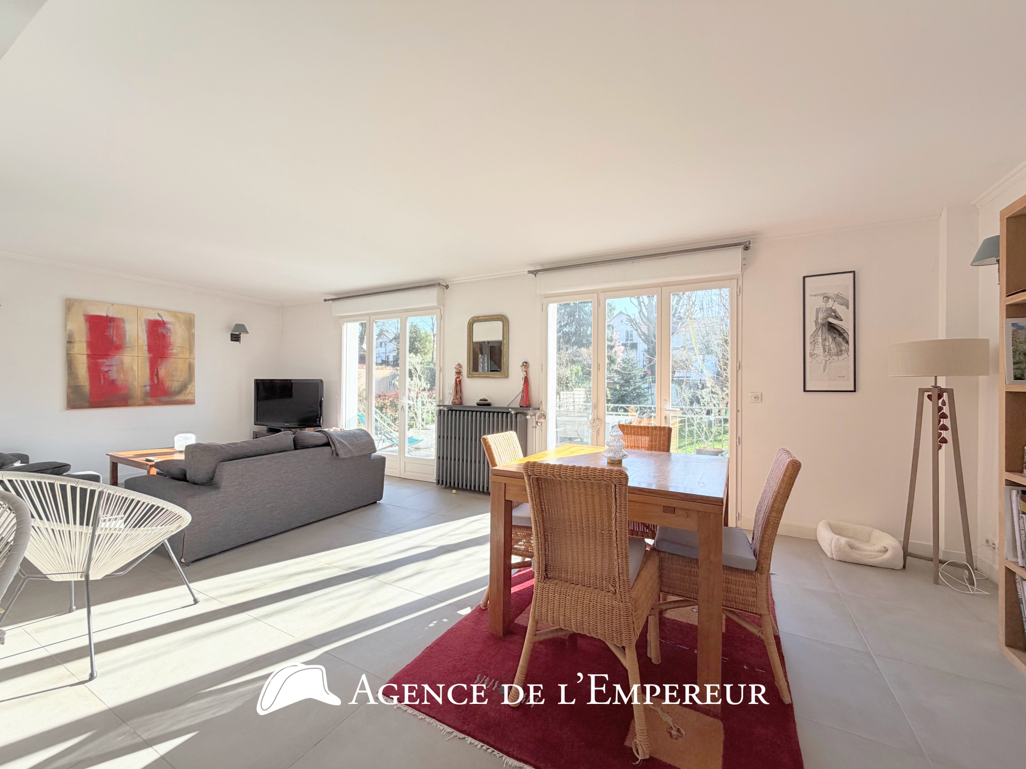 L'Agence de l'Empereur vous présente cette très élégante maison construite sur une grande parcelle horizontale de 602 m2. Elle est située dans une rue appréciée et recherchée, à moins de 10 minutes du centre-ville et du RER A. Ce bien offre une surface de 130 m2, plus 40 m2 de surfaces annexes en RDC (garage et grande pièce de rangement). Le séjour de plain-pied sur le jardin, largement ouvert sur la cuisine pour un total de 36 m2, pourra être agrandi de 15 m2 de façon autorisée(*), en rotonde ou avec une véranda par exemple ; 4 belles chambres dont une suite parents, respectivement de 12, 15, 16, et 19,50 m2. Baignée de lumière, cette maison est principalement orientée Sud sur le jardin d'environ 450 m2, véritable terrain de jeu pour les enfants. Sectorisation scolaire : école Tuck-Stell à deux pas et collège Les Martinets à 15 minutes. Zone UEd du Plan Local d'Urbanisme de la ville de Rueil-Malmaison. Double vitrage et chaudière gaz Frisquet à condensation pour le chauffage et l'eau chaude. Taxe foncière 1 865 euros/an. (*) sous réserve du respect du PLU en vigueur et de l'autorisation de la mairie. Visite en vidéo 4K : https://www.youtube.com/embed/2HAjw2CSoCc?si=2jVL4J60_11ChYdH
