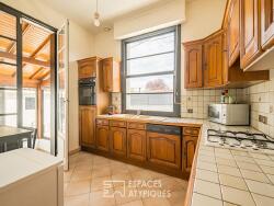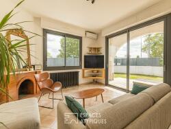 De plain-pied, la maison principale s'ouvre sur un séjour baigné de lumière, grâce à de larges baies vitrées qui invitent à contempler le jardin ou à rejoindre la terrasse. La cuisine, séparée mais tournée vers l'extérieur, est simple et fonctionnelle. Elle peut être modifier selon le goût des futurs acquéreurs. Tout près, une véranda et un grand cellier/buanderie, tous deux ouverts sur le jardin. Ces lieux pourraient, avec quelques touches de fraîcheur, se transformer en refuges de confort et de modernité.