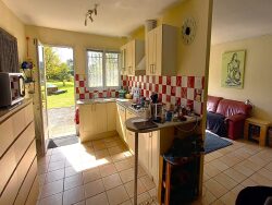 A 10mn de l' océan, sur terrain clos et arboré de 3130m², maison composée de : séjour cuisine ouverte, deux chambres plus bureau(ou troisième chambre), salle de bains/Douche, WC, et cellier. Terrasse en partie couverte, sauna, piscine hors sol et garage indépendant de 115m².