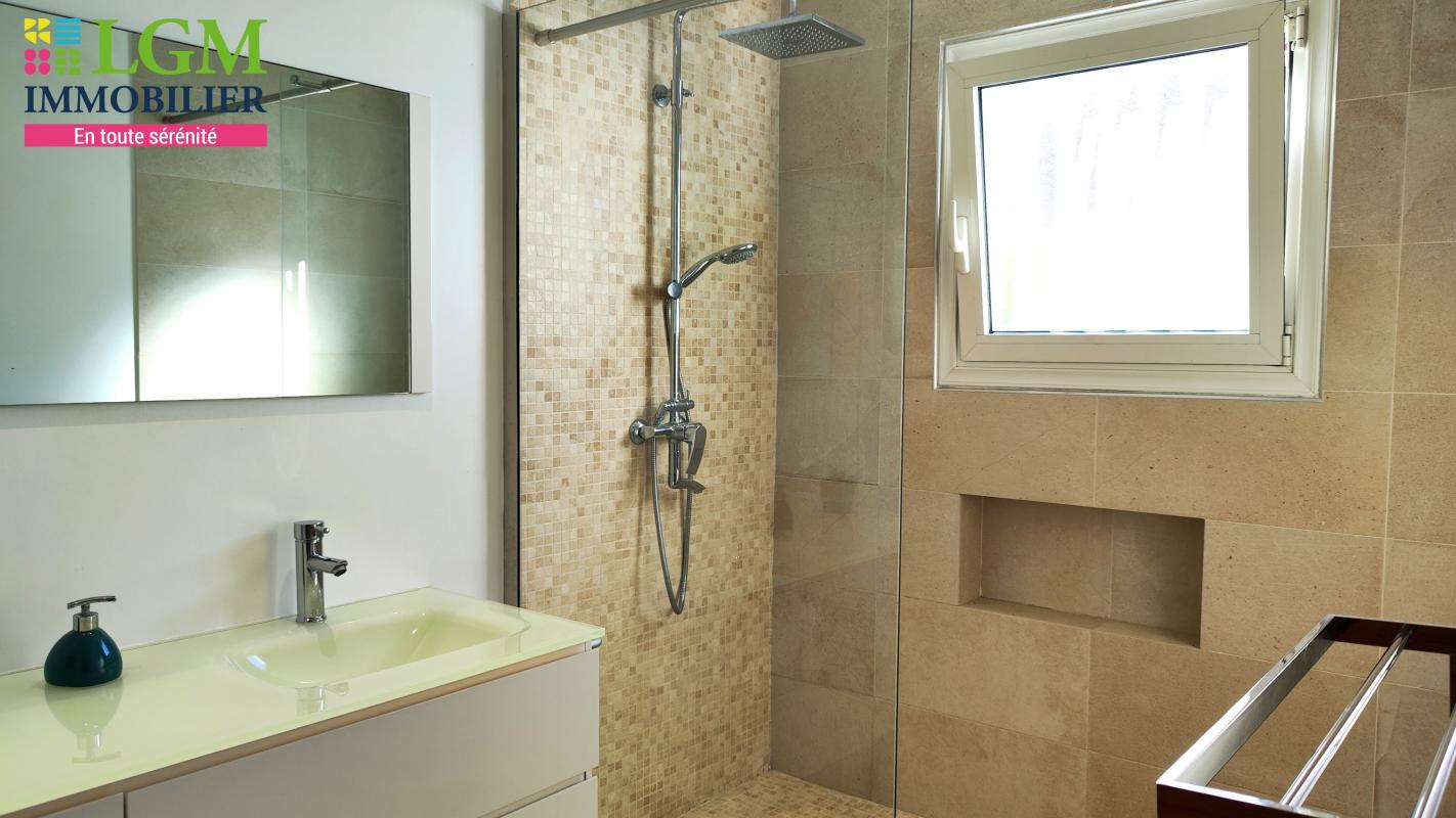 En RDC : un garage, une magnifique suite parentale, une seconde chambre, un wc, une salle d'eau et séjour lumineux avec cuisine ouverte trés bien équipée.