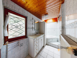 Construite dans les années 1940, la maison offre une superficie de 180 m² au sol et 125 m² habitable et est implantée sur un terrain aménagé de plus de 20 ares. Beaucoup d'améliorations ont été réalisés en cours des années.
