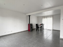 Le rez-de-chaussée accueille un lumineux séjour/salle à manger équipé d'un poêle à granulés avec un accès direct à une grande terrasse, idéal pour profiter de moments conviviaux. La cuisine aménagée, ouverte sur le séjour est pratique et dispose d'un généreux plan de travail. Vous trouverez également deux chambres en rez-de-chaussée, une salle d'eau et des WC séparés.