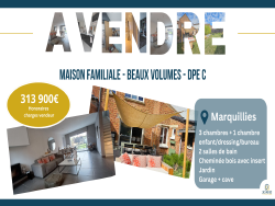 Uniquement chez Je vis ici. Située dans un village agréable, à proximité immédiate de la gare et des axes Lille Lens Béthune, cette maison séduit par ses volumes généreux, sa luminosité et son cadre de vie. Dès l'entrée, vous découvrirez une pièce de vie spacieuse et lumineuse, bénéficiant d'une lumière traversante, d'une vue dégagée sur le jardin et d'une cheminée bois avec insert, idéale pour des moments chaleureux en famille. La cuisine indépendante et fonctionnelle offre un espace agréable pour le quotidien. Au 1er étage, l'espace nuit propose deux belles chambres ainsi qu'une salle de bain. Le deuxième étage accueille actuellement une chambre d'enfant attenante à la suite parentale. Cet espace modulable peut aisément être aménagé en dressing ou en bureau, selon vos besoins. Une salle de bain complète cet étage, offrant un confort optimal. Côté extérieur, vous profiterez d'un jardin agréable, d'une terrasse de 30 m2, parfaite pour les beaux jours, ainsi que d'une dépendance offrant des espaces de rangement supplémentaires. Un garage, avec porte électrique et espace buanderie, complète ce bien. Maison familiale très agréable à vivre, offrant de beaux espaces, du confort et une localisation idéale pour les déplacements quotidiens. Informations complémentaires : double vitrage PVC, persiennes électriques, chaudière gaz, tout à l'égout, fibre optique, cave. 313 900EUR (honoraires charge vendeur) dont une partie du montant des honoraires de l'agence reversée à une association Ref JF024 DPE C: C 173 et C 26. Date du diagnostic 06/10/2025. Montant estimé des dépenses annuelles d'énergie pour un usage standard : entre 1410EUR et 1960EUR par an. Prix moyens des énergies indexés sur l'année 2023 (abonnements compris) Consommation énergie primaire : 173kWh/m2/an. Consommation énergie finale : 160kWh/m2/an. Les informations sur les risques auxquels ce bien est exposé sont disponibles sur le site Géorisques : www.georisques.gouv.fr. La présente annonce immobilière a été rédigée sous la responsabilité éditoriale de Mme Juliette FLEURET EI, mandataire indépendant en immobilier (sans détention de fonds), agent commercial de la SARL Je Vis Ici immatriculé au RSAC de Lille Métropole sous le numéro 2024AC00343, titulaire de la carte de démarchage immobilier pour le compte de la société Je Vis Ici