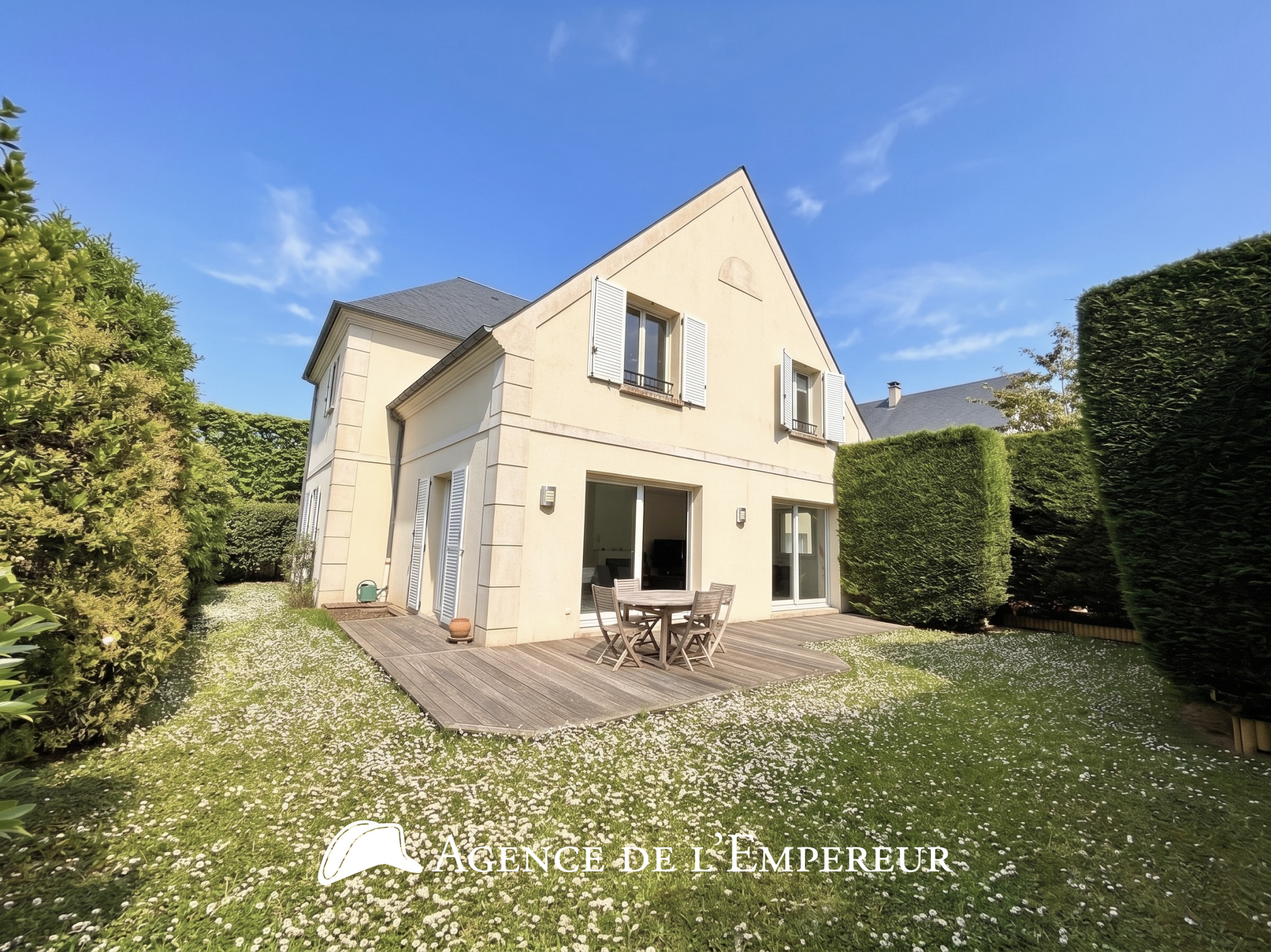 L'Agence de l'Empereur vous présente cette belle maison familiale de 5 chambres, au goût du jour, située dans le quartier Saint-Cucufa de Rueil-Malmaison, construite sur une parcelle de 709 m2. Sa surface de référence est de 266 m2, pour une surface habitable de 180 m2, dont 105 m2 au rez-de-chaussée, organisés en une généreuse réception de 75 m2, une cuisine d'hôte et une suite parents de 19 m2 s'ouvrant sur une discrète terrasse privative. À l'étage, 4 grandes chambres avec de jolies vues verdoyantes, une salle d'eau et des commodités. On est tout de suite frappé par ces grands espaces du rez-de-chaussée, illuminés par la grande et confortable véranda, un sentiment de sécurité dans cet écrin de verdure à l'abri des regards, le jeu des différents extérieurs, dont cet intéressant patio de 25 m2 accédant au jardin arrière. Vous apprécierez l'immense sous-sol haut de plafond, aménagé en grande pièce de loisir chauffée et atelier. La maison est lumineuse, et en très bon état extérieur. Les vendeurs vous cèdent en outre l'intéressant permis de construire qui permettrait la création de nouvelles parties habitables et de verrières. Une adresse Saint-Cucufa recherchée, située dans un quartier non isolé, résidentiel et familial, à proximité d'établissements scolaires publics et privés renommés. Vous serez à 13 minutes à pied des commerces du centre Iéna (boulangerie, pharmacie, Picard, Carrefour City, restaurants, etc.), ainsi que du collège Jules Verne et du lycée Richelieu. À quelques minutes à pied de l'école Daniélou et 12 minutes de Passy-Buzenval. Arrêt de bus 467 à quelques pas, permettant de rejoindre le RER A et Boulogne à ses terminus. Possibilité de garer des voitures en extérieur ou à l'abri. Chauffage électrique, taxe foncière 1 903 EUR. Les informations sur les risques auxquels ce bien est exposé sont disponibles sur le site Géorisques : www.georisques.gouv.fr