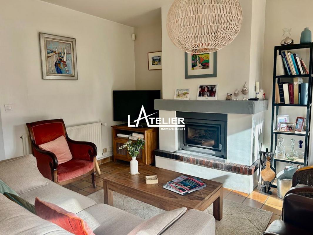 La pièce de vie principale, lumineuse et spacieuse, s'étend sur plus de 50 m² et comprend un salon chaleureux ouvert sur une cuisine contemporaine, parfaite pour recevoir en toute convivialité.