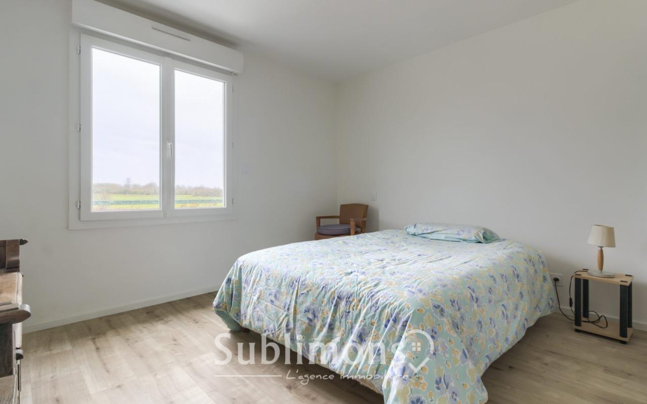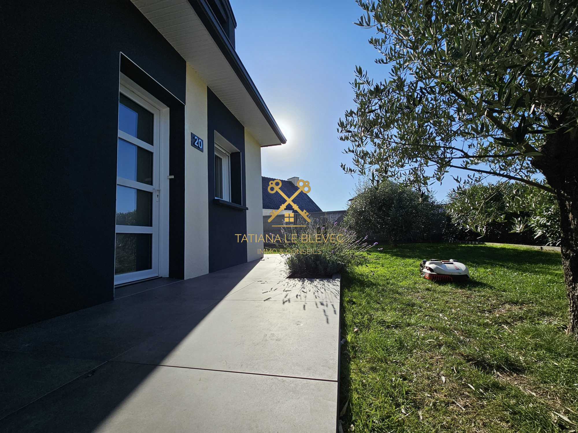 Elle offre une belle pièce de vie traversante ouverte sur un jardin exposé plein sud, sans vis-à-vis. La cuisine est cosy.