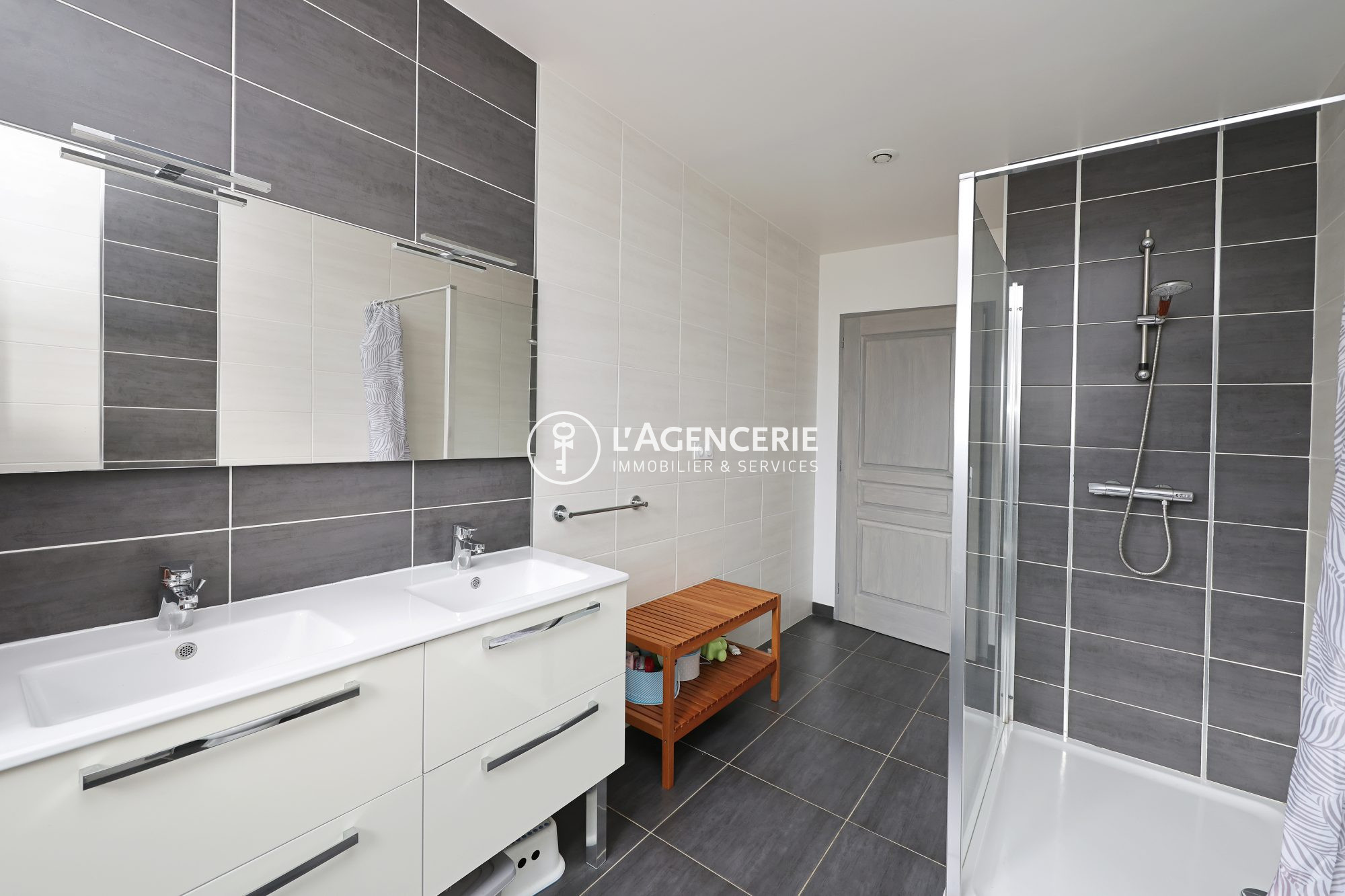 À l'étage, l'espace se complète par deux chambres supplémentaires, un bureau et une salle de bain avec toilette, permettant une parfaite séparation des espaces jour et nuit.