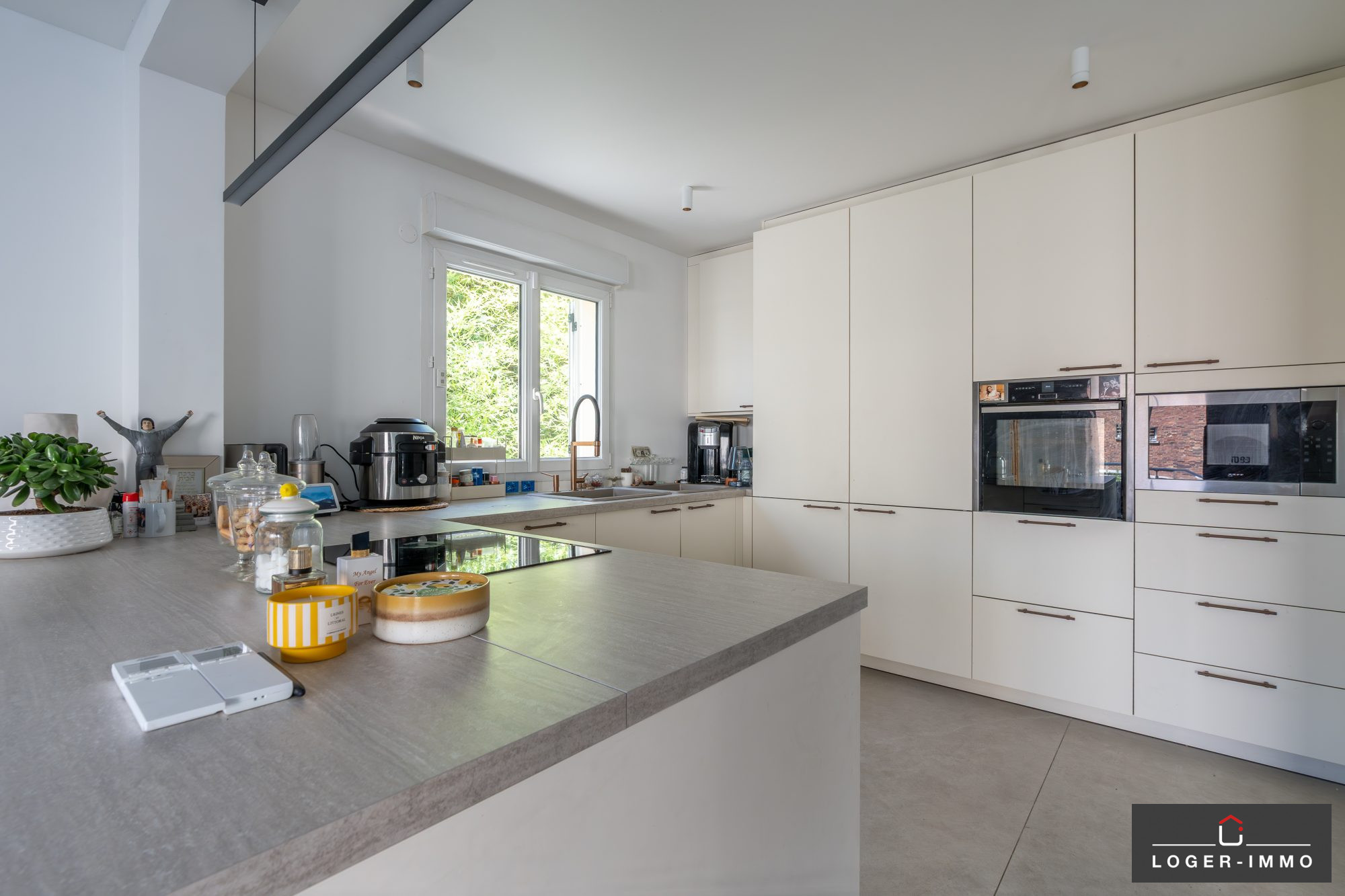 Le rez-de-chaussée offre un double séjour lumineux d'environ 45 m² donnant sur la terrasse et le jardin, une grande cuisine dinatoire de 26 m² ouverte sur l'extérieur, ainsi qu'une suite parentale de 15 m² , donnant sur le jardin, avec dressing et salle d'eau privative de 9,5 m². Une buanderie/cellier complète ce niveau, bénéficiant de beaux volumes et d'une belle hauteur sous plafond.
