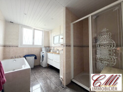 Agréable maison familiale composée d'une entrée avec placards, une spacieuse pièce de vie avec insert, une cuisine indépendante équipée, 2 chambres, une salle de bains et un wc indépendants. À l'étage : 3 chambres dont une avec salle d'eau et wc, une en enfilade et un dressing. Sous-sol complet comprenant chaufferie et une cave.