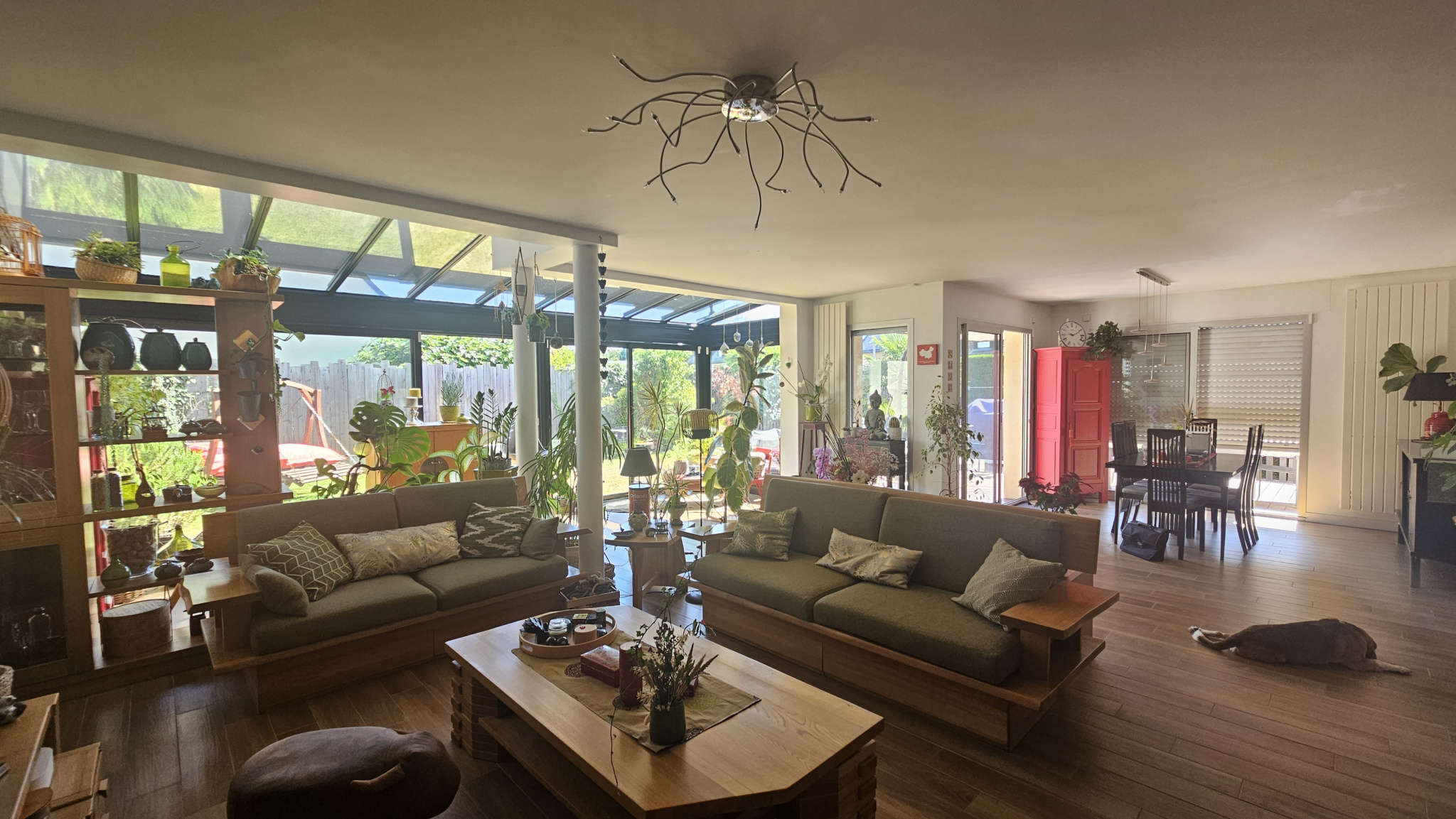 À l'extérieur, vous profiterez de deux terrasses (Est et Ouest), d'un jardin clos et sans vis-à-vis, ainsi que d'un garage.