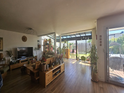 Elle se compose au rez-de-chaussée d'une entrée avec rangements, d'une spacieuse cuisine aménagée et équipée, d'un salon-séjour traversant Est-Ouest avec cheminée, ainsi que d'une salle d'eau avec WC.