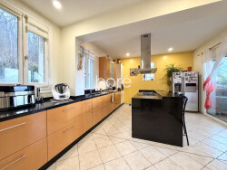 La cuisine américaine, aménagée et équipée, est un véritable atout pour les amateurs de cuisine. Elle s'ouvre sur les espaces de vie, créant une ambiance conviviale et chaleureuse. Les ouvertures en PVC et les portes à double vitrage garantissent une isolation optimale et une tranquillité absolue.