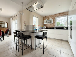 Vous recherchez une maison familiale, très fonctionnelle et qui présenterait de beaux volumes tout en étant économe en chauffage ? Venez découvrir cette maison lumineuse de 170 m² habitables, conçue par architecte et très bien entretenue. Elle comprend au rez-de-chaussée : un salon-séjour de plus de 60 m² avec poêle à granulés, une cuisine ouverte aménagée et entièrement équipée, une arrière-cuisine, un espace parental avec une chambre, une salle d'eau, et un wc. À l'étage : un vaste palier donnant sur un balcon dessert 4 grandes chambres, un espace dédié pour le télétravail, une salle de bains avec wc, un petit grenier. Le double garage attenant de 40 m² permet de sécuriser deux véhicules tout en préservant un espace de stockage. Le terrain de 680 m² environ est entièrement clos, et aménagé avec terrasse et spa.