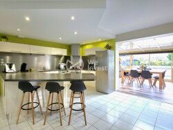 Située dans le secteur de Souillé, à deux pas de La Bazoge, cette maison familiale construite en 2003 offre 153 m² habitables et de beaux volumes baignés de lumière. Au rez-de-chaussée, vous découvrirez une spacieuse pièce de vie ouverte sur une véranda moderne de style industriel, agrémentée d'un poêle à bois pour une ambiance chaleureuse. La cuisine, ouverte, est aménagée et entièrement équipée. Ce niveau propose également quatre chambres de plain-pied, chacune avec dressing sur mesure conçu par un architecte d'intérieur, une salle de bain et un WC indépendant. À l'étage, un palier aménagé en coin détente/bureau dessert une chambre supplémentaire ainsi qu'une suite parentale avec salle d'eau et WC privatifs. À l'extérieur, le terrain de 943 m² exposé plein sud est pensé pour la convivialité : grande terrasse en bois, pergola, piscine hors sol, cabanon, abri de jardin et cour enrobée pour le stationnement. Une maison idéale pour une vie de famille confortable, au calme tout en restant proche de toutes les commodités. Distance du 2e Régiment d'Infanterie de marine ( 2e RIMa ) 18/22 minutes en voiture Contactez-nous dès maintenant pour organiser une visite et découvrir tout le potentiel de cette maison.