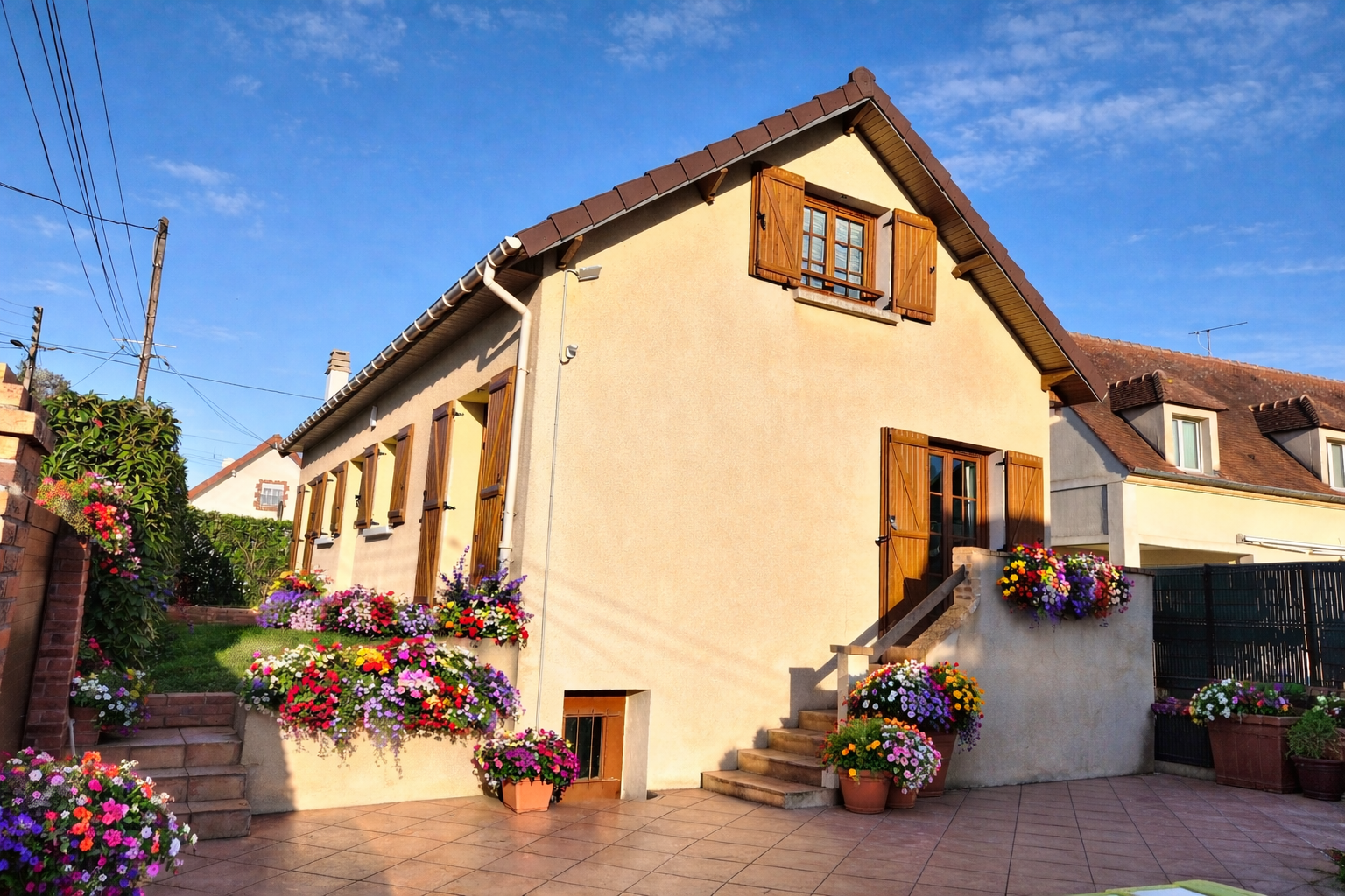 Quartier Les Callais, à 10 minutes à pied de la gare d'Ermont-Eaubonne et de toutes ses commodités. Au rez-de-chaussée : Une entrée, un grand espace de vie de 50m2 avec cheminée ouverte sur une cuisine américaine équipée, une véranda avec accès terrasse et un WC. Au premier étage : Grand palier (pouvant être aménagé en salle de jeux, salon, ou en chambre), 2 chambres, salle de bain et un WC séparé. Deuxième étage : Suite parentale, dressing, salle d'eau. Le jardin : arboré sans vis-à-vis exposé plein sud. Un garage de 35m2 raccordé à l'eau et à l'électricité complète les prestation de ce bien. TRANSPORTS : A 10 min à pied de la gare Ermont-Eaubonne EDUCATION : A 6 min de l'école Gisèle Halami avec son centre de loisir. AUTRES INFORMATIONS : La maison bénéficie déjà de l'isolation des murs extérieurs. La toiture a été changée en 2022. Pompe à chaleur récemment installée. Les informations sur les risques auxquels ce bien est exposé sont disponibles sur le site Géorisques : www.georisques.gouv.fr