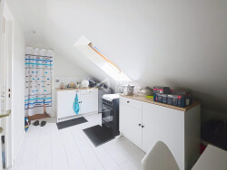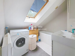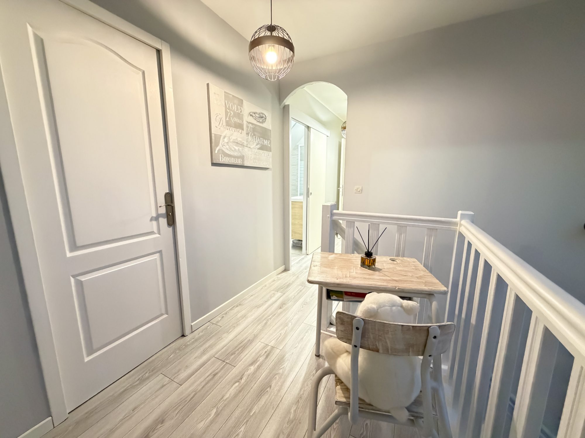 À l'étage, un palier dessert deux vastes chambres, ainsi qu'une salle d'eau et des toilettes séparées. Cet espace peut facilement accueillir un coin bureau ou détente, selon vos envies.