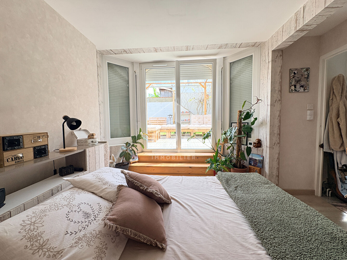 De plain-pied : Bel espace salon-séjour lumineux ouvert sur une cuisine moderne et équipée Insert bois pour une ambiance chaleureuse 3 belles chambres Salle d'eau + WC Chauffage gaz (chaudière + radiateurs) Grand garage