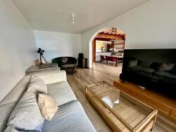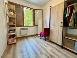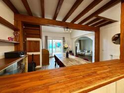 Au rez-de-chaussée, une cuisine ouverte équipée s'ouvre sur une salle à manger chaleureuse, séparée par un bar en bois et agrémentée de poutres apparentes, prolongeant l'espace vers un salon convivial. On y trouve également une chambre et un WC indépendant. À l'étage, un palier lumineux et ouvert sur la pièce de vie offre un bel espace modulable, desservant deux chambres confortables, ainsi qu'une pièce supplémentaire pouvant être aménagée en bureau ou en dressing. Une salle de bain avec WC intégré vient parfaire cet étage.
