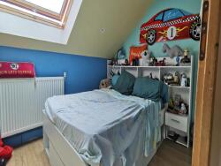 À l'étage, le palier mène à deux chambres ainsi qu'à deux pièces supplémentaires, modulables selon vos besoins : chambres d'appoint, bureaux ou salle de jeux. Un second WC est déjà installé, et l'aménagement d'une salle d'eau supplémentaire est tout à fait envisageable.