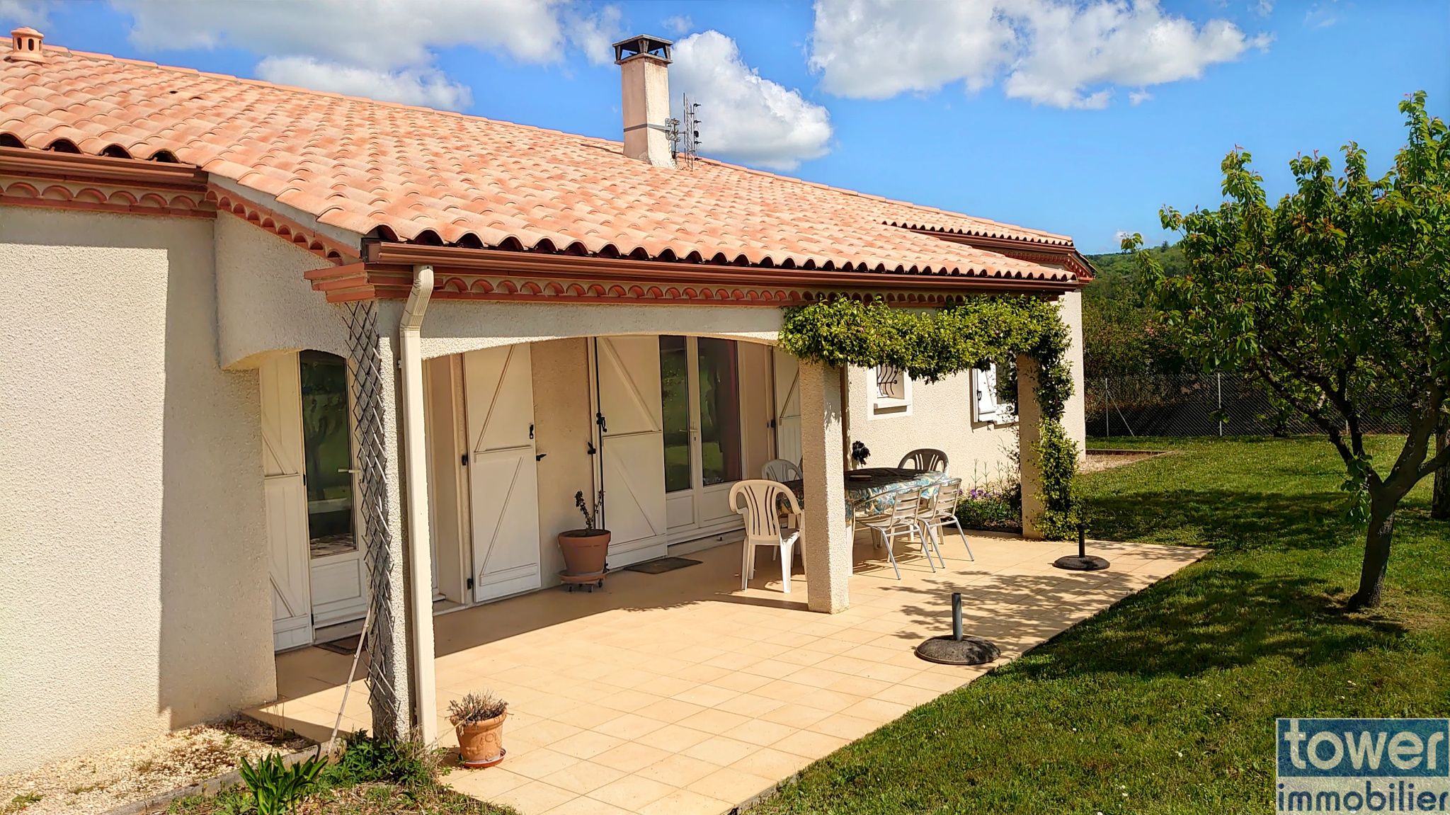 À l'étage principal : une vaste entrée, une cuisine indépendante de 15 m2 avec accès direct à une terrasse couverte de 25 m2, un séjour lumineux de plus de 32 m2, deux belles chambres, une salle de bain et un WC séparé.