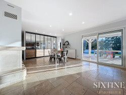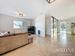 Concernant l'intérieur, le rez de chaussée en travertin lui aussi, se compose d'une très belle pièce à vivre de 65 m2, lumineuse grâce à la baie vitrée donnant sur la terrasse. La cuisine ouverte sur cet espace repas constitue un véritable atout pour des familles nombreuses ou souhaitant recevoir. Deux chambres avec placard sont disponibles à ce niveau ainsi qu'une salle de bain et un WC indépendant.