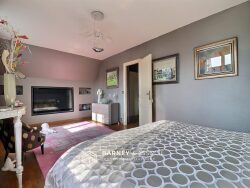 Dès l'entrée, vous découvrirez une très belle pièce de vie lumineuse, agrémentée d'une somptueuse cheminée et ouverte sur une spacieuse véranda offrant une vue dégagée sur le jardin, plein sud. Le rez-de-chaussée comprend également une grande cuisine moderne, aménagée et équipée, avec un accès direct à la terrasse, une chambre ainsi qu'un WC indépendant.