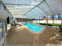 Véranda climatisée avec piscine à coque chauffée 8×5 au chlore