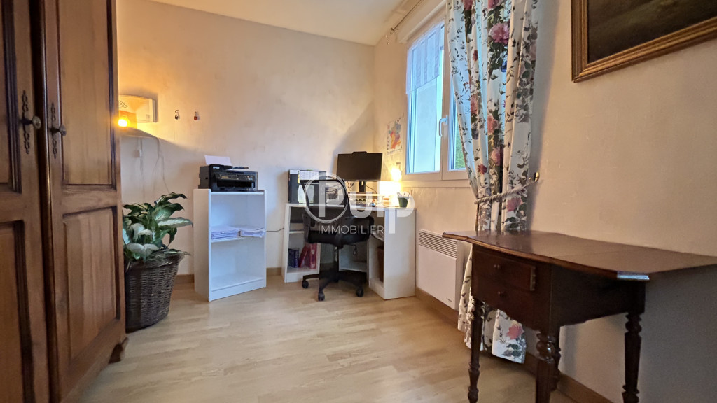 Construite en 1951, cette maison s'organise sur trois niveaux et offre des volumes généreux. Le rez-de-jardin accueille une cuisine dînatoire de 22 m², surplombée par une mezzanine ouverte de 16 m², idéale pour un espace bibliothèque, bureau ou coin détente. Vous y trouverez également un salon indépendant de 23 m², une salle de bain avec baignoire et douche, des WC séparés, une seconde cuisine de 14 m² ainsi qu'une première chambre de 11,5 m². À l'étage, un dégagement dessert une seconde chambre de 17 m², ainsi qu'un espace de 21 m² actuellement utilisé en pièce d'appoint, aisément transformable selon vos besoins. En sous-sol, un espace technique complet comprend une chaufferie, une salle d'eau, un second WC, un espace de rangement, un dégagement ainsi qu'une véranda de 8 m² ouverte sur la cour.