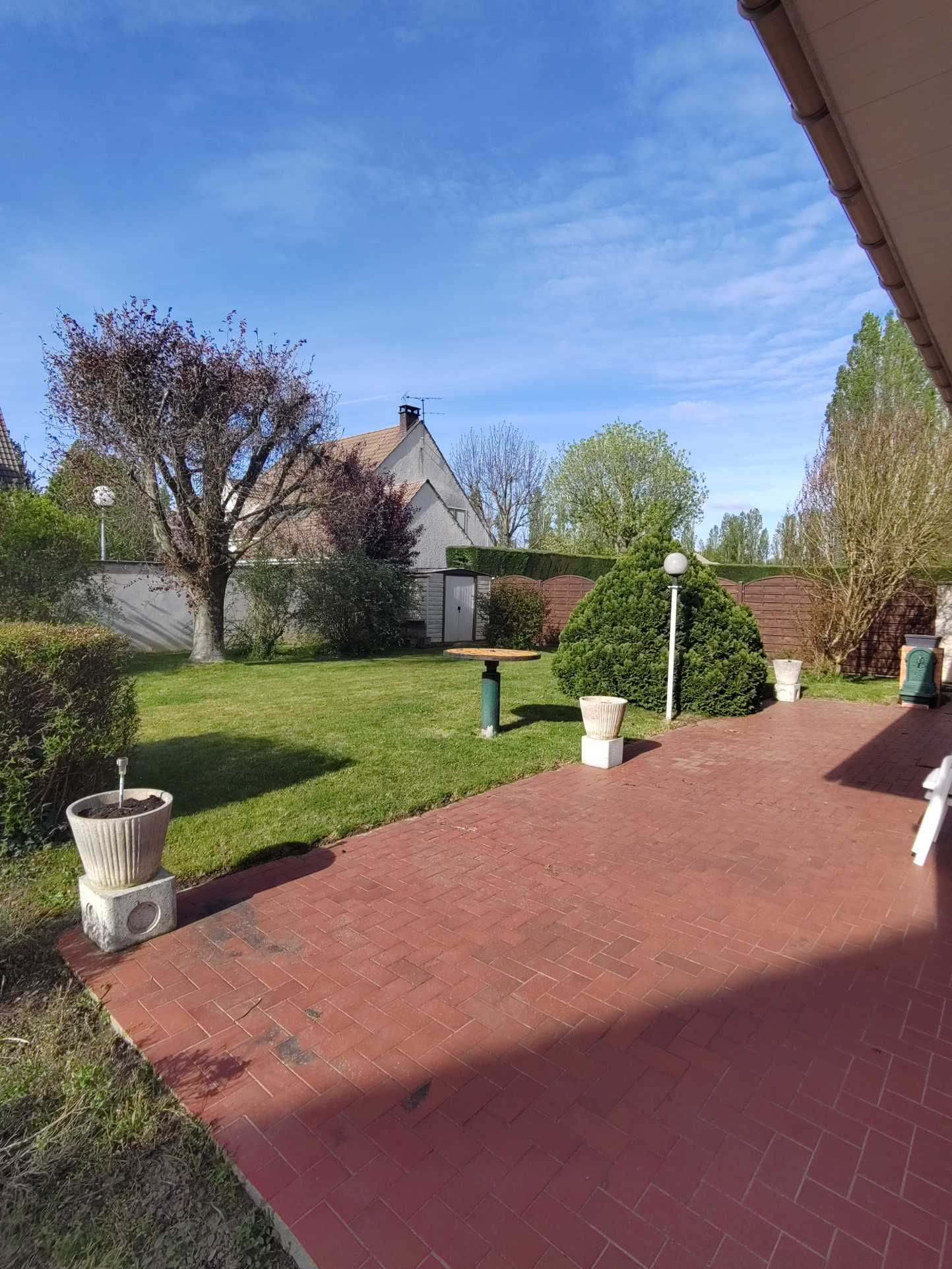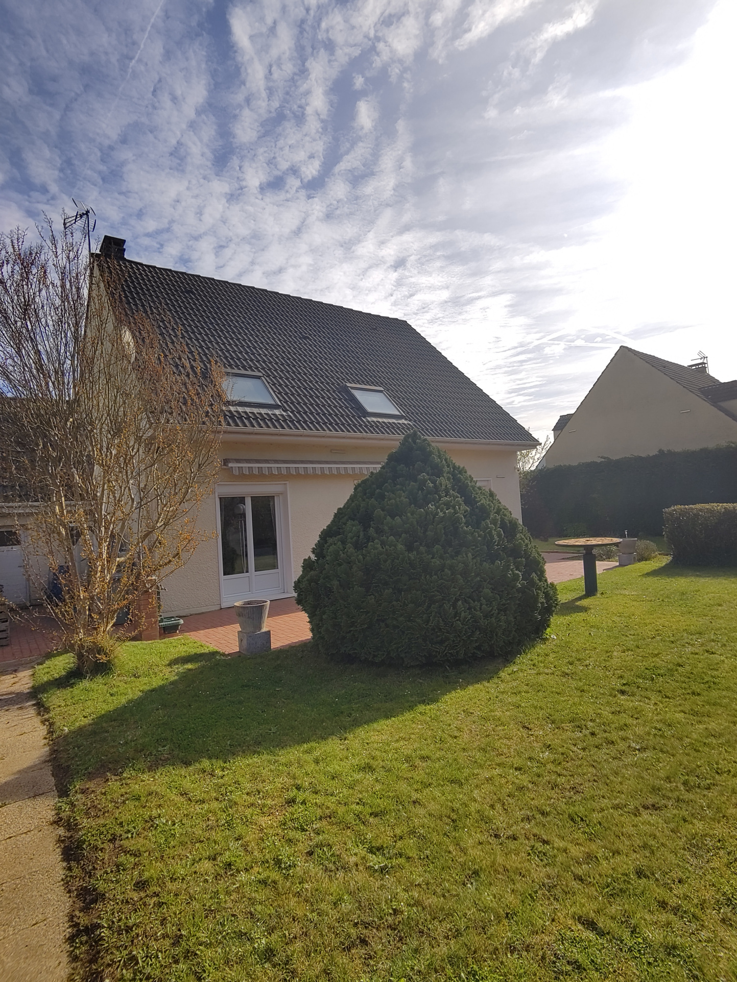 À l'extérieur, vous trouverez un beau jardin arboré ainsi qu'une grande terrasse. Pour vos véhicules, vous disposez d'un garage double ainsi que deux places de stationnement dans la cour, le tout sur une parcelle de 631m².