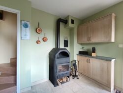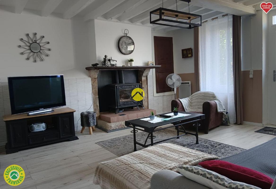- Rez-de-jardin : Entrée, Cuisine aménagée avec poêle à bois, Salon avec second poêle à bois, Salle à manger, Chambre Salle de bains avec wc Buanderie
