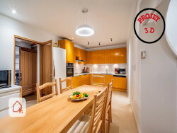 À l'intérieur, la maison offre des volumes confortables et fonctionnels. La cuisine indépendante permet une organisation pratique au quotidien, tandis que le séjour avec cheminée crée une atmosphère chaleureuse.
