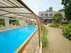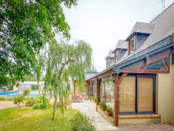 Implantée dans un cadre calme et verdoyant, cette maison d'habitation propose des espaces généreux et fonctionnels. Le rez-de-chaussée s'organise autour d'une entrée menant à une chambre avec salle d'eau et WC privatifs, un salon-séjour équipé d'une cheminée à insert, ainsi qu'une cuisine aménagée et équipée. Une seconde chambre, un WC indépendant et un accès direct au garage, à un atelier et à une chaufferie complètent ce niveau. Une véranda lumineuse prolonge les espaces de vie et s'ouvre sur une piscine couverte, protégée par un abri haut, permettant une utilisation sur une large période de l'année. Un second garage offre un espace adapté au stationnement d'un camping-car et d'un véhicule supplémentaire. À l'étage, quatre chambres supplémentaires sont disponibles, ainsi qu'une salle d'eau et un WC indépendant. À l'extérieur, le terrain entièrement clos et paysagé comprend une cave et un espace dédié au potager. Un bien aux prestations complètes, offrant confort et volumes, dans un environnement agréable. Les informations sur les risques auxquels ce bien est exposé sont disponibles sur le site Géorisques : www.georisques.gouv.fr