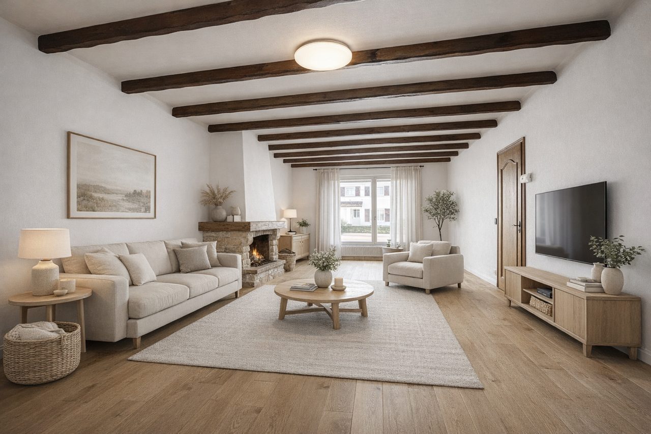 Au rez-de-chaussée, vous trouverez une belle pièce de vie, une cuisine équipée, une salle de douche récemment rénovée ainsi qu'un WC indépendant. La pièce de vie et la cuisine méritent un petit rafraîchissement, ce qui vous permettra de les aménager selon vos goûts.