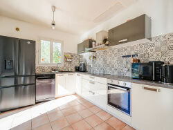 Située en bordure de forêt, dans un environnement très agréable pour les balades, cette bastide au style néo provençal et particulièrement agréable à vivre et offre de beaux volumes et de nombreuses possibilités. Au rez-de-chaussée, vous découvrirez une spacieuse pièce de vie d'environ 55 m² comprenant une cuisine ouverte entièrement équipée, un salon et une salle à manger. Une buanderie ainsi qu'un WC indépendant complètent ce niveau. A l'étage, l'espace nuit se compose de trois chambres, dont une suite parentale avec salle d'eau, d'une salle de bains, ainsi que d'un bureau, idéal pour le télétravail. Véritable atout : un studio totalement indépendant d'environ 20 m² avec salle d'eau et WC, pouvant facilement être transformé en T2 est également à votre disposition. Idéal pour une activité professionnelle, accueillir la famille ou générer un revenu locatif. La maison dispose également d'un sous-sol avec garage et plusieurs espaces de stockage. A l'extérieur, vous profiterez d'une piscine semi-enterrée 8x4, d'un abri voiture et d'un cadre naturel privilégié en bord de forêt. A seulement 1,5 km du centre du village. Une maison idéale pour une grande famille ou une profession indépendante, offrant encore des possibilités d'aménagement. A visiter sans tarder ! Diagnostics : en cours Bénéficiez d'un accès complet et exclusif à toutes les photos, descriptif détaillé du bien ou encore informations sur le quartier directement sur notre site internet ! www.aixty.com "Prix honoraires frais d'agence inclus" : 534 500 euros charge vendeur RCS Aix 814 576 997 00021