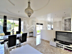 Dès l'entrée, vous découvrez une vaste pièce de vie traversante, baignée de lumière grâce à ses grandes baies vitrées orientées Est/Ouest. Le salon et la salle à manger s'ouvrent sur une cuisine contemporaine entièrement équipée, idéale pour la vie de famille ou les réceptions.