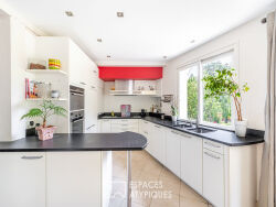 Située sur la commune de Saint-Cyr, dans une zone naturelle protégée, cette maison de caractère de 265 m² vous offre un cadre de vie d'exception, alliant calme absolu et proximité des commodités. L'environnement préservé garantit une tranquillité totale, loin des nuisances urbaines, tout en étant à quelques minutes seulement de Lyon. La propriété, à quelques pas du club de tennis, bénéficie d'un accès direct aux sentiers de randonnée et de VTT, idéals pour découvrir les Monts d'Or et ses cabornes. La maison, se distingue par une pièce de vie aux volumes généreux, baignée de lumière naturelle. La cuisine ouverte, parfaitement équipée, se prolonge sur un salon chaleureux avec une cheminée Focus, créant un espace convivial et cosy. De là, vous accédez directement à une terrasse plein sud, sans vis-à-vis et au calme, offrant une vue dégagée sur le jardin et la nature environnante. L'espace nuit, quant à lui, se compose de cinq chambres réparties sur plusieurs niveaux. La suite parentale, dispose d'une salle de bain privative, tandis qu'une autre chambre bénéficie d'une salle de douche. Les trois autres chambres se partagent une salle de bain commune. La maison est équipée d'un chauffage au sol dans toute les pieces, assurant un confort thermique optimal en toutes saisons, ainsi que de nombreux autres équipements comme une buanderie, une cave et un sauna. A l'extérieur, cette propriété offre un jardin paysagé exceptionnel de 4351 m2 avec une grande piscine, un pool house équipé d'une cuisine extérieure, et un terrain de pétanque pour vos moments de détente en famille ou entre amis. L'environnement naturel, calme et préservé, ainsi que la grande piscine et ses équipements extérieurs, en font un lieu idéal pour profiter des journées ensoleillées. L'annexe de 124 m², construite en 2012 sur deux niveaux, peut être utilisée selon vos besoins : garage, atelier ou maison d'invités. Un box à chevaux complète l'ensemble, offrant ainsi la possibilité d'accueillir des animaux tout en profitant pleinement de l'espace. Cette maison de caractère, nichée dans un écrin de nature, représente un bien rare sur les Monts d'Or, où la qualité de construction, la tranquillité, et l'accès facile à des loisirs de plein air (tennis, randonnée) font de cet endroit un lieu unique pour s'établir et savourer la douceur de vivre. CLASSE ENERGIE : C / CLASSE CLIMAT : C Montant moyen estimé des dépenses annuelles d'énergie pour un usage standard, établi à partir des prix de l'énergie de l'année 2021 : entre 3050 et 4200 euros Guillaume Brun (EI) Agent Commercial - Numéro RSAC : 797 600 988 - Lyon.