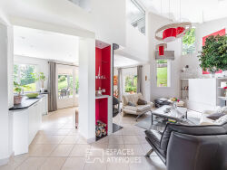 Située sur la commune de Saint-Cyr, dans une zone naturelle protégée, cette maison de caractère de 265 m² vous offre un cadre de vie d'exception, alliant calme absolu et proximité des commodités. L'environnement préservé garantit une tranquillité totale, loin des nuisances urbaines, tout en étant à quelques minutes seulement de Lyon. La propriété, à quelques pas du club de tennis, bénéficie d'un accès direct aux sentiers de randonnée et de VTT, idéals pour découvrir les Monts d'Or et ses cabornes. La maison, se distingue par une pièce de vie aux volumes généreux, baignée de lumière naturelle. La cuisine ouverte, parfaitement équipée, se prolonge sur un salon chaleureux avec une cheminée Focus, créant un espace convivial et cosy. De là, vous accédez directement à une terrasse plein sud, sans vis-à-vis et au calme, offrant une vue dégagée sur le jardin et la nature environnante. L'espace nuit, quant à lui, se compose de cinq chambres réparties sur plusieurs niveaux. La suite parentale, dispose d'une salle de bain privative, tandis qu'une autre chambre bénéficie d'une salle de douche. Les trois autres chambres se partagent une salle de bain commune. La maison est équipée d'un chauffage au sol dans toute les pieces, assurant un confort thermique optimal en toutes saisons, ainsi que de nombreux autres équipements comme une buanderie, une cave et un sauna. A l'extérieur, cette propriété offre un jardin paysagé exceptionnel de 4351 m2 avec une grande piscine, un pool house équipé d'une cuisine extérieure, et un terrain de pétanque pour vos moments de détente en famille ou entre amis. L'environnement naturel, calme et préservé, ainsi que la grande piscine et ses équipements extérieurs, en font un lieu idéal pour profiter des journées ensoleillées. L'annexe de 124 m², construite en 2012 sur deux niveaux, peut être utilisée selon vos besoins : garage, atelier ou maison d'invités. Un box à chevaux complète l'ensemble, offrant ainsi la possibilité d'accueillir des animaux tout en profitant pleinement de l'espace. Cette maison de caractère, nichée dans un écrin de nature, représente un bien rare sur les Monts d'Or, où la qualité de construction, la tranquillité, et l'accès facile à des loisirs de plein air (tennis, randonnée) font de cet endroit un lieu unique pour s'établir et savourer la douceur de vivre. CLASSE ENERGIE : C / CLASSE CLIMAT : C Montant moyen estimé des dépenses annuelles d'énergie pour un usage standard, établi à partir des prix de l'énergie de l'année 2021 : entre 3050 et 4200 euros Guillaume Brun (EI) Agent Commercial - Numéro RSAC : 797 600 988 - Lyon.